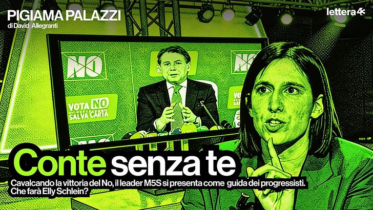 Cavalcando la vittoria del No, il leader M5S si presenta come guida dei progressisti. Che cosa farà Elly Schlein?
